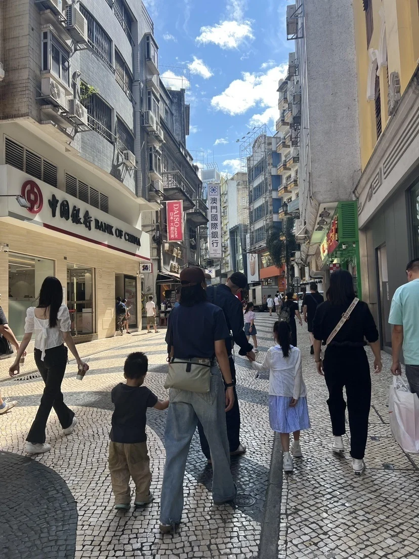 国庆黄金周的第二天,有网友在澳门偶遇到朱丹周一围一家四口出游,画面中,朱丹与周一围他们的宝贝儿女,漫步于澳门的街头巷尾,画面尽显温馨幸福。