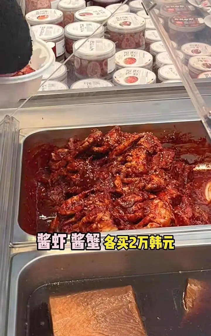 肉类青菜,还有一些熟食,他们都会买一些,,在看到酱虾 酱蟹秋瓷炫也忍不住各买2万韩元,大概120元人民币的样子,这可是她的最爱。